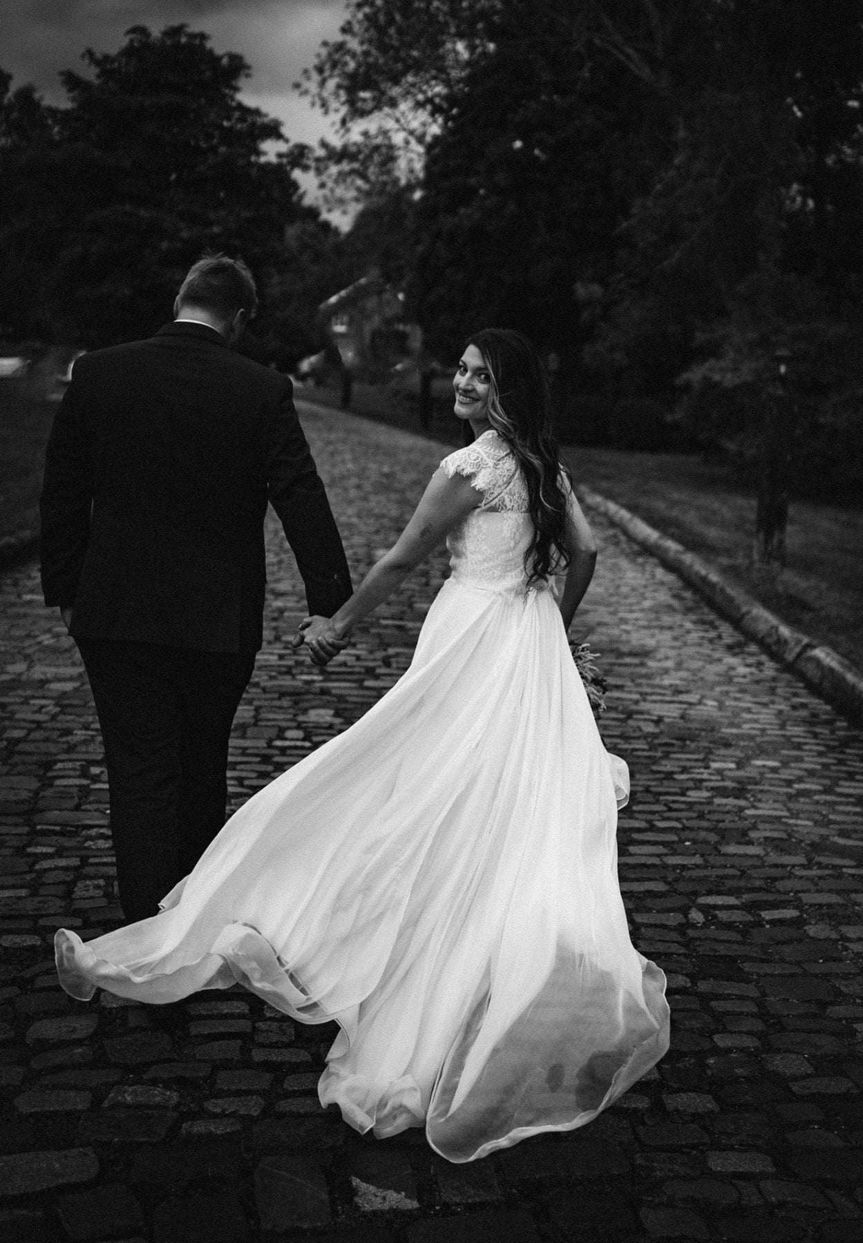The Delia Skirt is cut from oyster coloured silk chiffon and lined with bridal ivory eco satin. This full-length silhouette cinches in the small of the waist with a silk satin waistband. Subtle waist gathers in the main layer allow for a more voluminous hemline that ends in a sweeping train at the back. The Delia Skirt pairs beautifully with our heavy satin bridal separates tops.