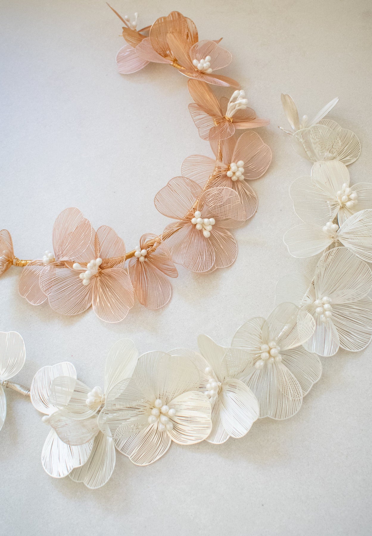 Composition: Laser-cut copper wire flowers on a malleable base. To be secured into hair with pins (does not come with hairpins)