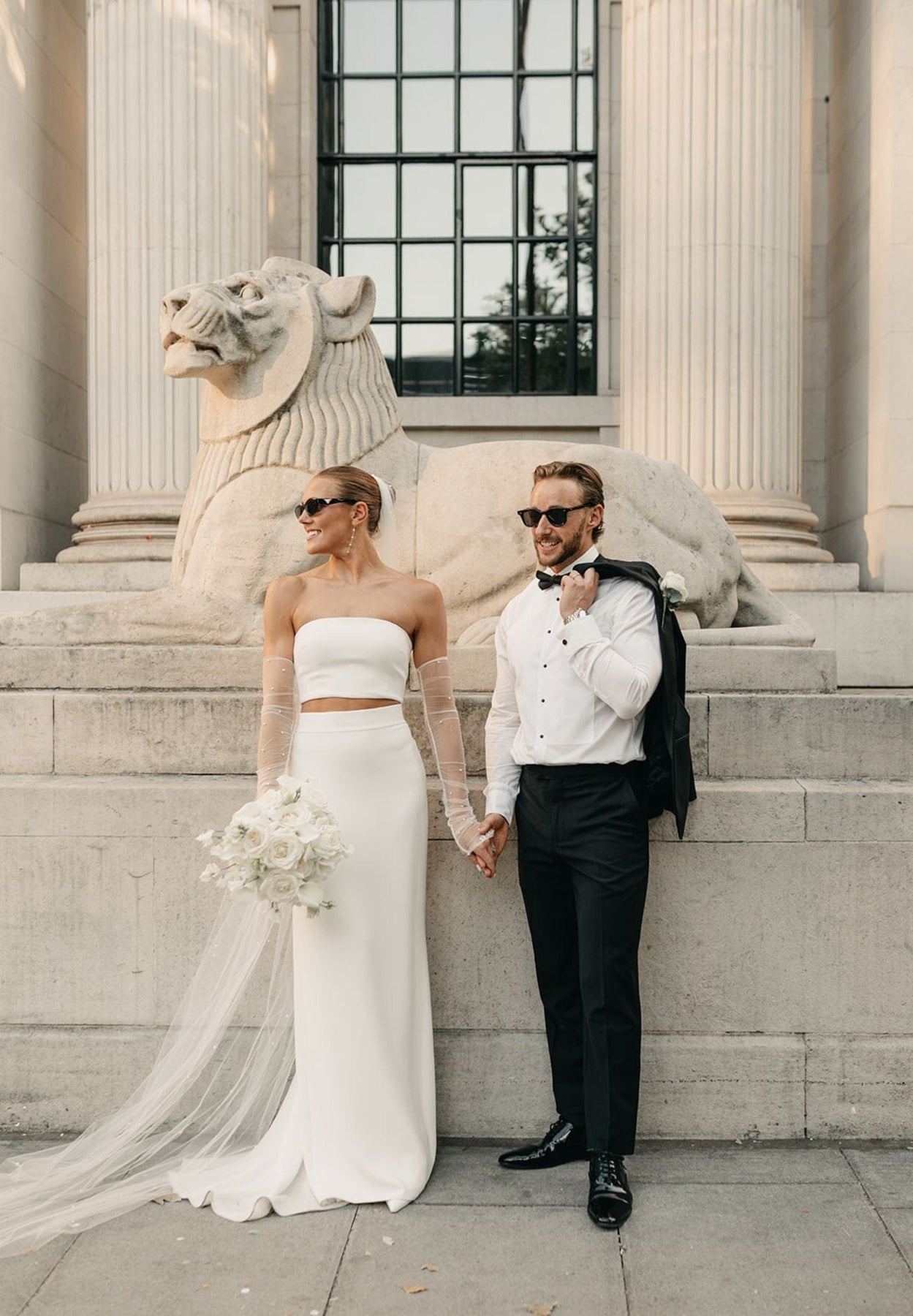 The modern Zia Bandeau is cut from bone white heavy crepe that lends a soft structure to this square neckline bustier. Bust cups and boning lend structure to the bodice while detachable skinny straps offer styling options. A secure, fully openable center back zip closes the center back for effortless dressing.